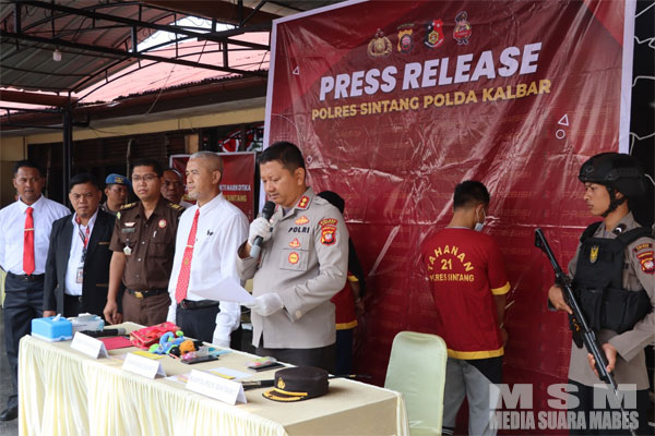 Pada press release yang dipimpin langsung oleh Kapolres Sintang AKBP Dwi Prasetyo Wibowo tersebut turut juga dihadirkan kedua pelaku yang masing-masing berinisial H alias Mbok dan M alias Aat.