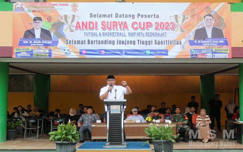 Dalam sambutannya Ketua Yayasan Taraka Surya yang menaungi Sekolah Global Surya Islamic School (GSIS), Dr. H. Andi Surya mengapresiasi seluruh panitia yang berhasil menggelar kegiatan Andi Surya Cup 2023 dengan sukses.