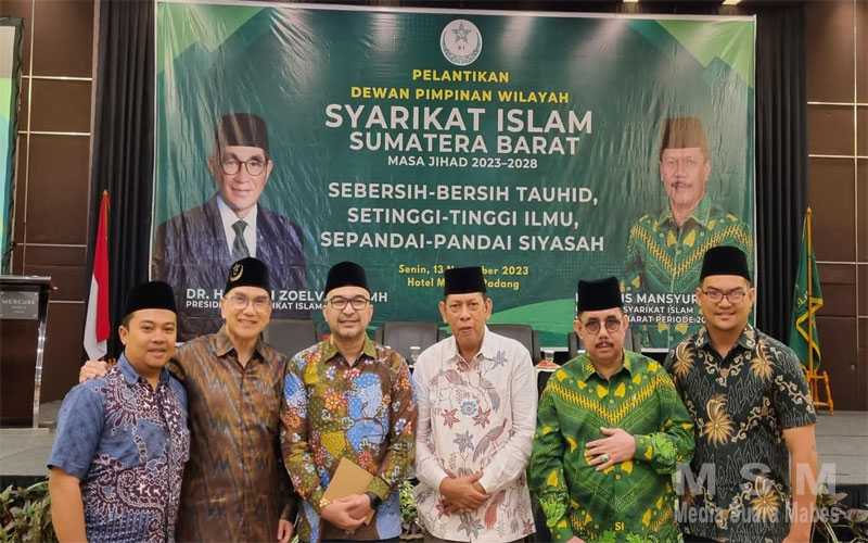 MediaInvestigasiMabes, Padang Sumber – “Tahun 1915, Agoes Salim mengikuti Kongres Syarikat Islam (SI) di Surabaya mengenai perjuangan HOS Tjokroaminoto dan Agoes Salim diminta memimpin Surat Kabar Neraca yang merupakan saluran ide-ide Tokoh Pergerakan dan beliaupun mengikuti perjuangan HOS Tjokroaminoto berkeliling Jawa Timur. Di Tahun yang sama Agoes Salim resmi masuk menjadi Anggota Central Sarekat Islam bersama HOS Tjokroaminoto, Abdul Muis dan Sosrokardono “, kata salah seorang Tokoh Ulama dan Sejarah dari Sumatera Barat di Ballroom Andromeda Hotel Mercure ketika menjadi Keynote Speaker dalam rangkaian acara pelantikan Dewan Pengurus Wilayah Syarikat Islam masa Jihad 2023- 2028 oleh Buya H.Masoed Abidin di hadapan Forkopimda dan tamu undangan serta kaum Syarikat Islam yang memadati ruangan pada hari kemaren.