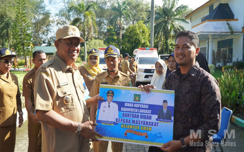 Penyerahan bantuan hiba dinas Koprasi kepada masyarakat khusus pelaku UMKM untuk pembangunan usaha secara simbolis.