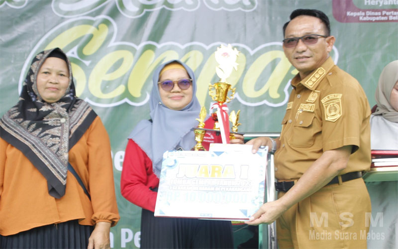 Penyerahan penghargaan berlangsung saat Puncak Acara Gerakan Menanam di Pekarangan (GEMPAR) Tahun 2023 di Halaman Kantor Distangan Kabupaten Beltim, Senin (27/11/23). Bupati Beltim Burhanudin menyerahkan langsung penghargaan kepada pihak-pihak yang dinilai berdedikasi bagi kegiatan Pekarangan Pangan Lestari (P2L) tersebut.