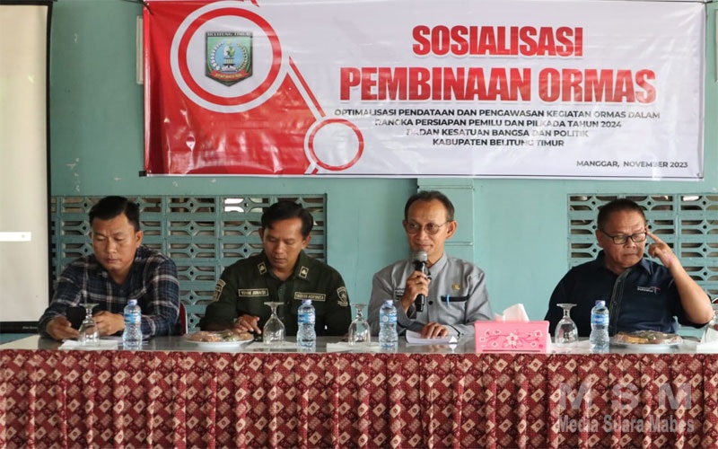 MediaInvestigasiMabes, Beltim – Dalam upaya menyamakan persepsi dan pemahaman secara jelas terhadap organisasi kemasyarakatan demi mewujudkan tertib administrasi berorganisasi, sebanyak 50 organisasi masyarakat (ormas) di Kabupaten Belitung Timur (Beltim) mengikuti sosialisasi pembinaan ormas di Kafe Fega, Manggar, Kamis (30/11/2023).