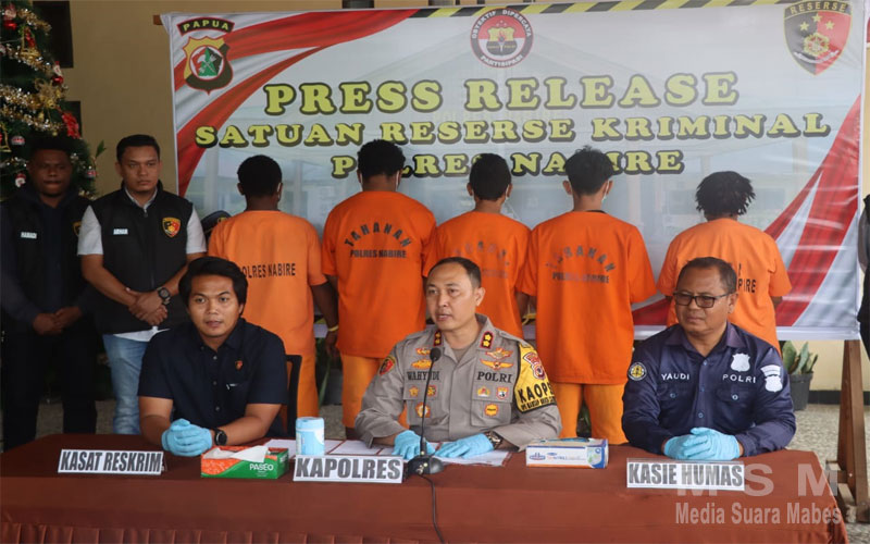 Dalam konferensi pers yang dihadiri oleh berbagai media lokal, Kapolres Nabire menyampaikan rincian beberapa kasus tindak pidana yang terungkap.
