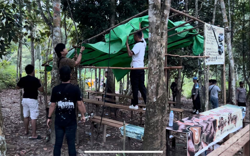 Tidak hanya mengamankan TKP, Kepolisian juga melakukan pembongkaran terhadap fasilitas arena judi sabung ayam.