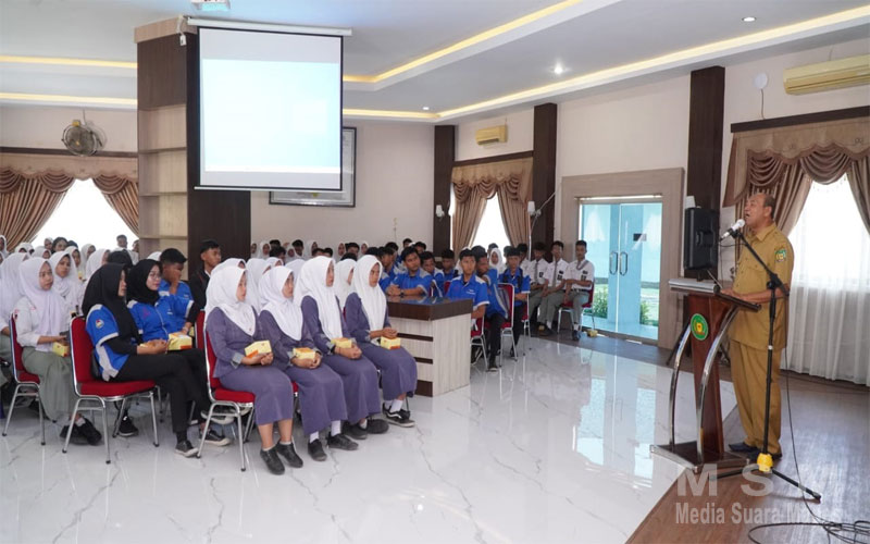 Turut Hadir Kacabdis Wilayah II Samsul Bahri, S.Sos., M. Pd, Rektor ITSI Purjianto, S.E, M.M, Certified Public Speaking BNSP RI & ESQ Saddam Wira Hamdani, Kampung Beasiswa Agung Kurniawan, Siswa/siswi SMK se Kabupaten Langkat. (Rtn)