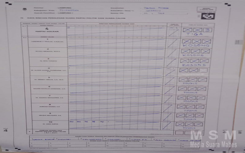 MediaInvestigasiMabes, Bandarlampung – Partai Golkar dirugikan akibat kecerobohan hitung suara di form C1 Plano di TPS 5 Kelurahan Gunung Agung Bandarlampung dan di salah satu TPS di Desa Sukamaju, Kecamatan Punduh Pidada. Hal ini dijelaskan oleh relawan Andi Surya, Agus Setiyo. Disebutkannya bahwa suara Partai Golkar di TPS 5 Gunung Agung, yang seharusnya 44 suara berkurang menjadi menjadi 29 saja.