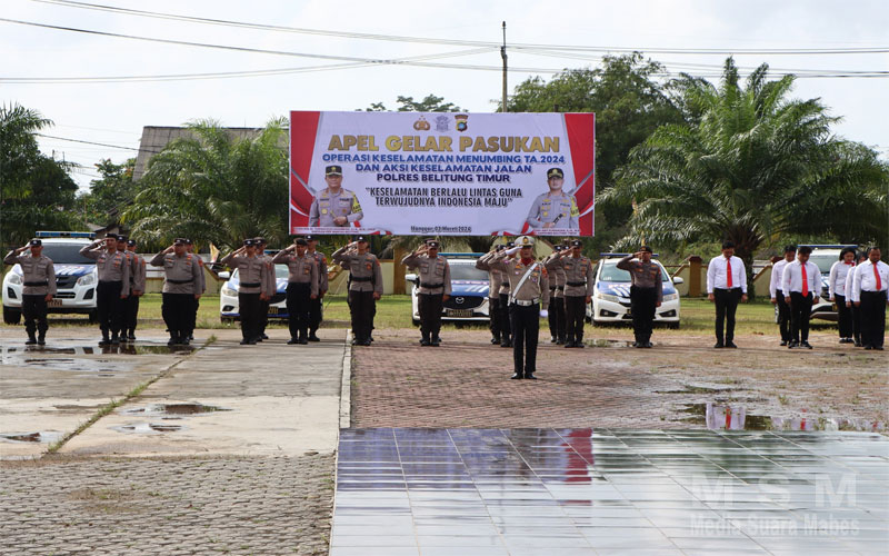 MediaInvestigasiMabes, Beltim – Polres Belitung Timur melaksanakan Operasi Kepolisian Terpusat dengan Sandi Operasi Keselamatan Menumbing Dan Aksi Keselamatan Jalan Tahun 2024. Operasi Kepolisian ini diawali dengan Upacara Gelar Pasukan yang dipimpin oleh Bupati Belitung Timur Drs Burhanudin di Halaman Depan Mapolres Belitung Timur, Sabtu (02/03/2024)