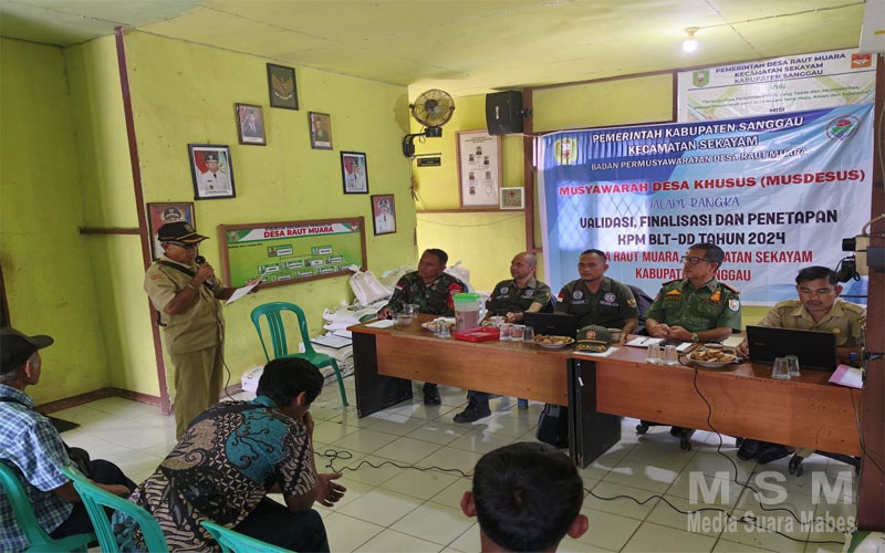 MediaInvestigasiMabes, Sanggau – Babinsa koramil 1204-02/Sekayam Serda Jondika Panjaitan Menghadiri Undangan Musyawarah Desa Khusus dalam rangka Validasi,finalisasi dan Penetapan KPM BLTD-DD Tahun 2024 Desa Raut muara Bertempat di aula Kantor Desa Raut Muara.Desa Raut Muara Kec.Sekayam Kab Sanggau. Rabu.(6/3/2024)