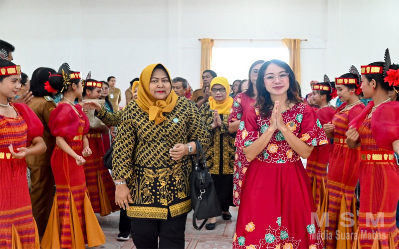 Kehadiran Tim Supervisi Provinsi Sumut yang diketuai Ny Yuni Rajali disambut dengan tari-tarian dari Sanggar Seni Maduma.