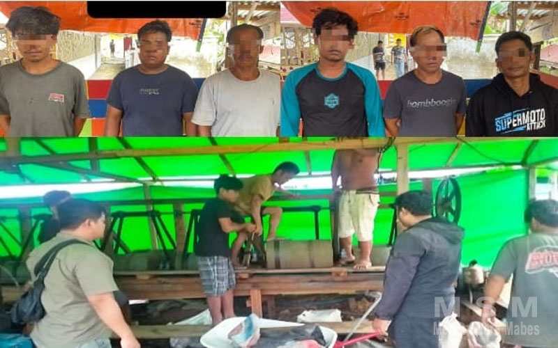 Adapun keenam pelaku PETI yang diamankan tersebut antara lain RM, SAM, UD, MUS, DUD dan YAT, sedangkan alat-alat yang dipergunakan dalam penambangan antara lain mesin gelondong, mesin api, mesin jak hamer, mesin blower dan palu.