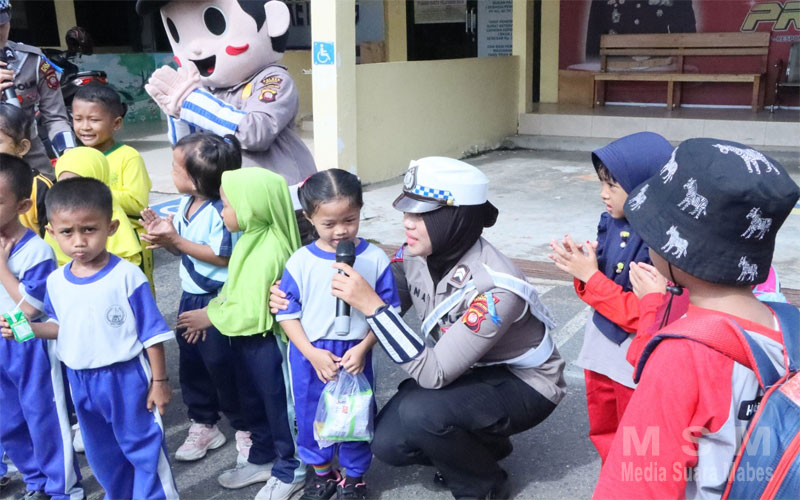 “ Kita harapkan dengan adanya kegiatan Polisi Sahabat Anak ini, dapat menambah pemahaman anak anak usia dini terkait peraturan dasar lalu lintas sehingga nantinya dapat membiasakan diri untuk tertib berlalu lintas dan tertanam sikap disiplin sejak usia dini, dan kelak dewasa nanti menjadi pelopor keselamatan berlalu lintas bagi orang di sekitarnya,” Ujar Angga.