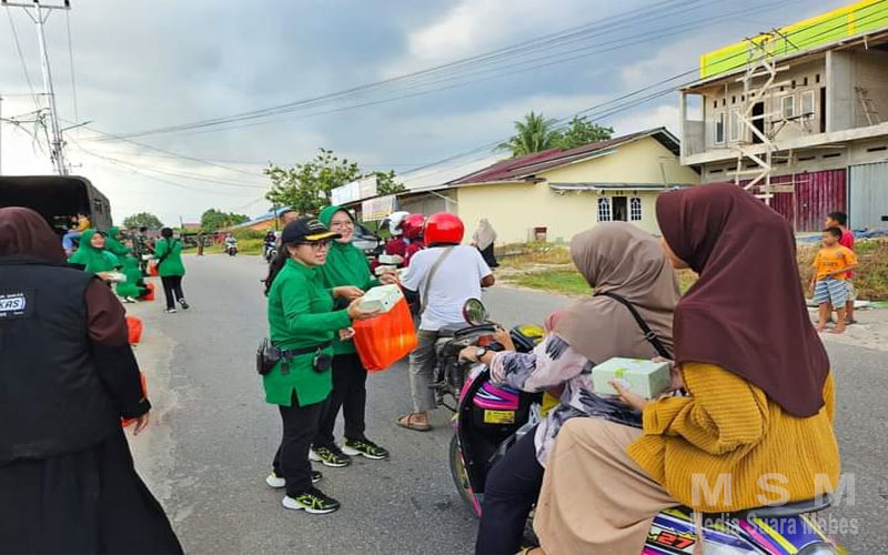 MediaInvestigasiMabes, Landak Kalbar – Menambah keceriaan dan keimanan di bulan suci Ramadhan, Persit KCK Cabang LV Yonarmed 16 PD XII/TANJUNGPURA membagikan takjil gratis kepada masyarakat sekitar kota Ngabang, Kab Landak Provinsi Kalimantan Barat.