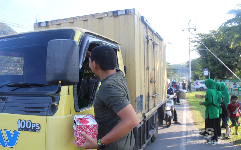 Takjil yang diberikan kepada warga pengguna jalan yang melintas di depan Makodim tersebut harapannya bisa membantu warga yang belum sempat menyiapkan makanan dan minuman untuk berbuka puasa.