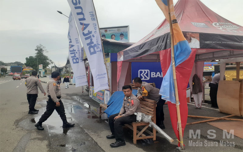 Dalam pantauan Jurnalis MediaSuaraMabes tampak beberapa personil dari Polsek Kota Bukittinggi sedang mendirikan Posko Pelayanan dan Pengamanan Lebaran tahun ini.