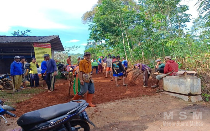 Tampak antusias dan semangat warga dalam giat gotong royong, membersihkan badan jalan pemakaman dan pembuatan siring saluran air guna mengantisipasi air hujan masuk ke areal tempat pemakaman umum(TPU).