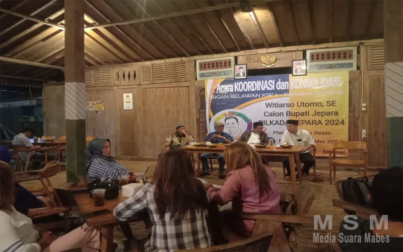 Di Plataran Mojo Resto, Desa Bawu, Jepara, Minggu malam pukul 19.00 – selesai Organ Relawan KW1 mengadakan acara Koordinasi dan Konsolidasi dalam rangka pembentukan organ relawan KW1 atau Kancane W1tiarso.