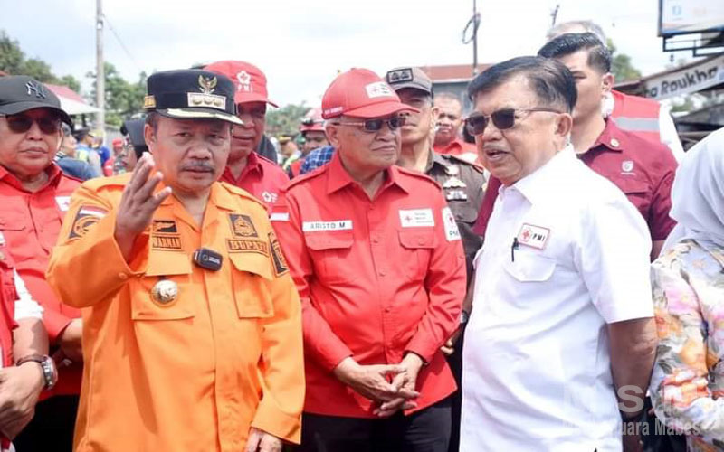 MediaInvestigasiMabes, Agam – Bupati Agam Dr H Andri Warman MM dampingi Ketua Palang Merah Indonesia (PMI), Jusuf Kalla di Posko Tanggap Darurat Bencana, di Nagari Bukit Batabuah, Kecamatan Candung, Selasa (14/5).