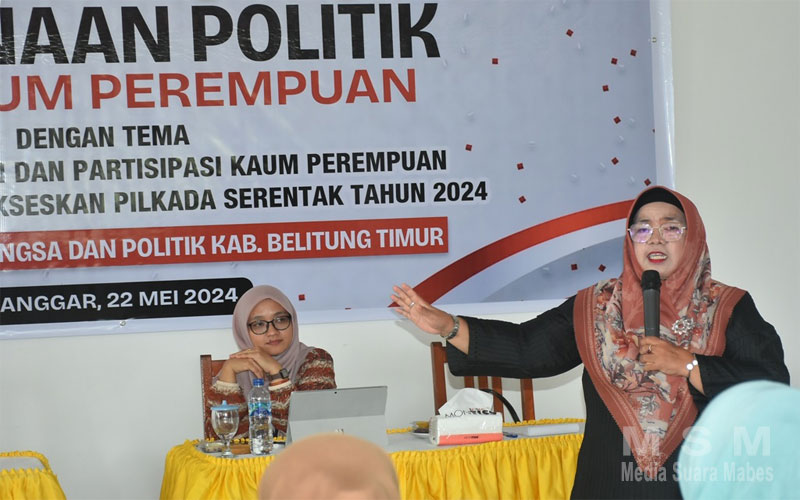 Evi yang didampingi Kepala Bidang Politik Dalam Negeri dan Organisasi Kemasyarakatan, Suciliswati menyatakan perempuan di Kabupaten Beltim juga harus kritis dan ikut mengawal demokrasi yang ada di Kabupaten Beltim.