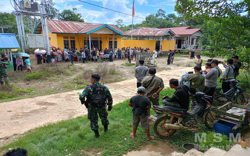Belasan personel Polsek Kayan Hilir yang melaksanakan pengamanan itu berjaga di seputar kawasan Kantor Desa Mentunai Kecamatan Kayan Hilir.