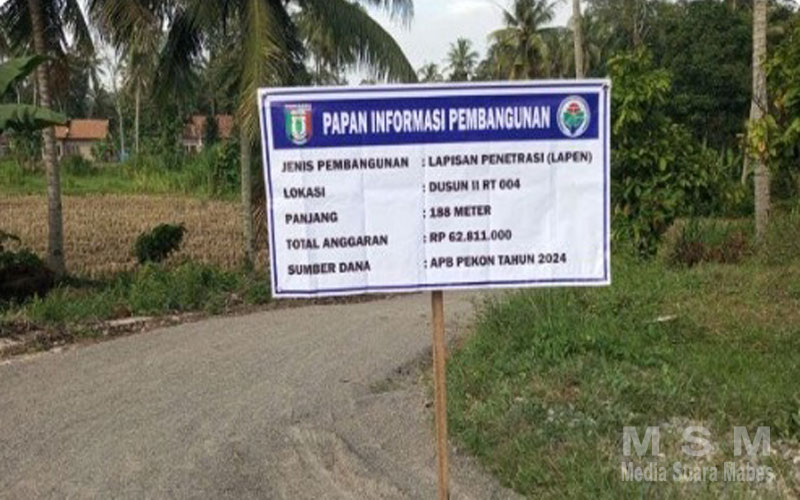MediaInvestigasiMabes, Pringsewu – Pekon Way Ngison Kecamatan Pagelaran Kabupaten Pringsewu, merealisasikan Pembangunan Lapisan Penetrasi (LAPEN) sepanjang 601 meter yang menggunakan Anggaran Dana Desa Tahap 1Tahun 2024.