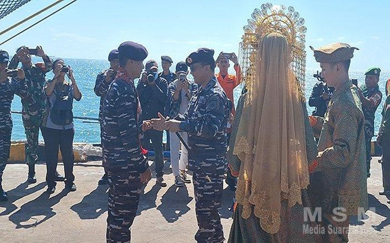 Penyambutan kedatangan secara simbolis ,yaitu dari Kemendibudristek dan Komandan KRI Dewaruci menyerahkan bendera Logo Jalur Rempah dan MBJR.