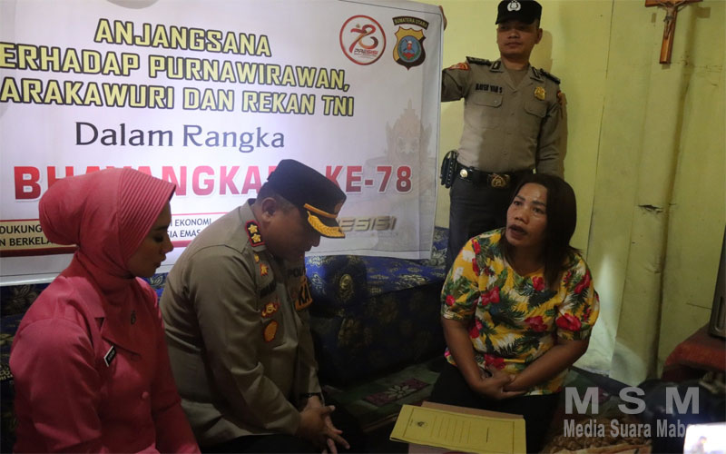 Dalam kesempatan itu pula Kegiatan Anjangsana ini sebagai bentuk kepedulian dan sinergitas TNI Polri dalam rangka memperingati HUT Bhayangkara ke 78 sebagai bentuk kepedulian