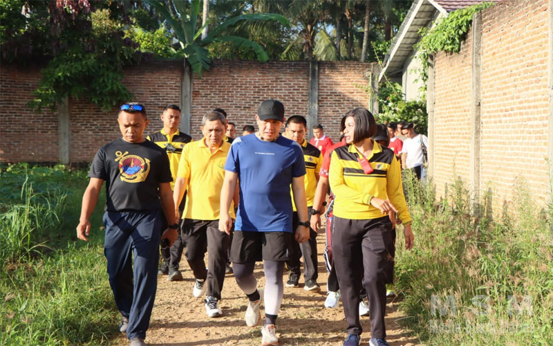 Dengan penuh semangat, Kapolres Pesawaran memulai kegiatan dengan melepas para peserta Jalan sehat secara seremonial dengan rute yang telah ditetapkan, para peserta Jalan Sehat berjalan santai menikmati udara segar pagi.