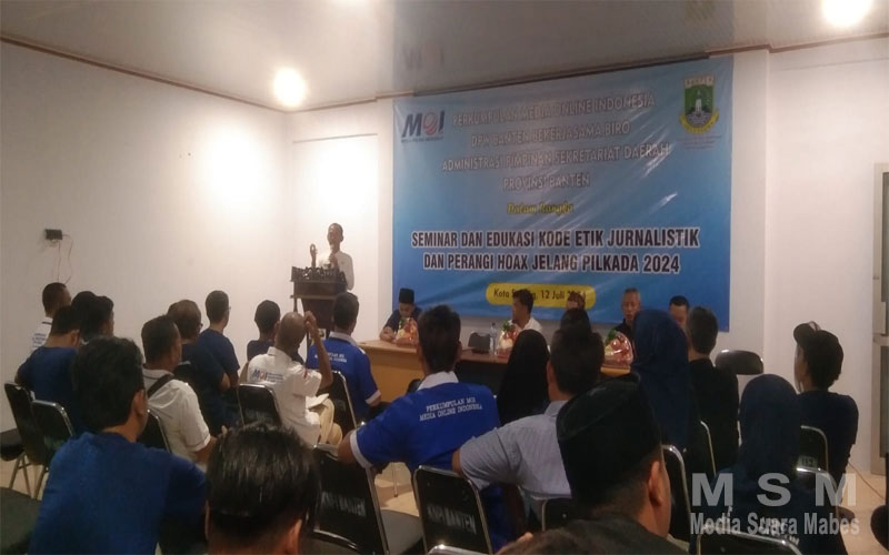 MediaInvestigasiMabes, Serang – DPW Media Online Indonesia (MOI) Provinsi Banten bersama dengan biro administrasi pimpinan sekretaris Daerah Provinsi Banten menggelar acara seminar dan edukasi mengenai kode etik jurnalistik serta upaya pencegahan penyebaran hoaks menjelang Pilkada 2024. Acara tersebut berlangsung di Gedung Pemuda KNPI KP3B Banten pada Jumat, (12/7/2024).