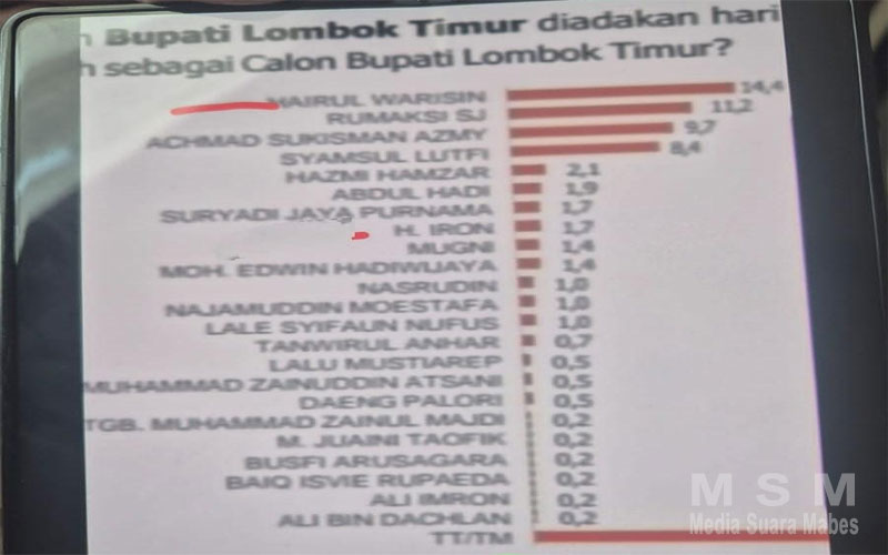 Juru bicara tim pasangan bakal calon bupati dan wakil bupati Lombok Timur, Syamsul Luthfi- Abdul Wahid (Luthfi-Wahid), Heri Sabri menyayagkan ada sejumlah pihak atau calon tertentu yang sengaja memanipulasi hasil survei untuk mengecoh publik.