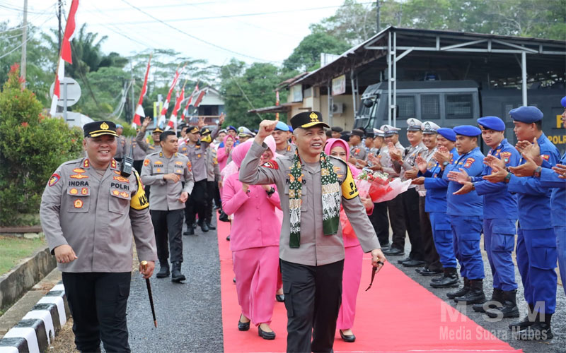 Kedatangan Jenderal Bintang Dua Polri ini semakin terasa, usai disambut dengan tarian selamat datang sekapur sirih serta riuh personel Polres Belitung Timur melantunkan nyanyian selamat datang.