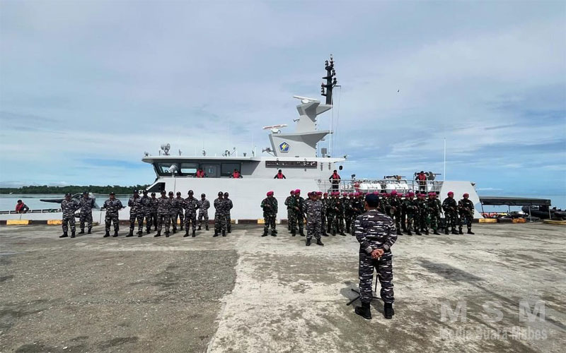 MediaInvestigasiMabes, Nabire – Bertempat di Pelabuhan Umum Samabusa, Distrik Kimi, Kab. Nabire. Komandan Lanal Nabire Letkol Laut (P) Pius Herdasa Krisna Murti, S.T, M.T, CBEI, CACA, CRMP, CHRMP. Beserta dengan seluruh Perwira dan Anggota menyambut KRI Matabongsang – 873. (29/08/2024).