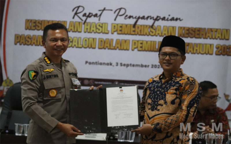Hasil pemeriksaan kesehatan yang telah dilakukan secara komprehensif kemudian diserahkan secara resmi kepada Komisi Pemilihan Umum (KPU) Provinsi Kalimantan Barat serta KPU Kabupaten/Kota terkait dan Turut Hadir Dalam Kegiatan Tersebut Bawaslu Provinsi Kalbar, Bawaslu Kabupaten/Kota, Tim Sukses Calon Gubernur/Wakil Gubernur, dan Anggota KPU baik Provinsi, Kabupaten/Kota. Penyerahan hasil ini merupakan salah satu langkah penting dalam memastikan bahwa seluruh peserta Pemilu dalam kondisi kesehatan yang prima dan siap menjalankan tugas negara.