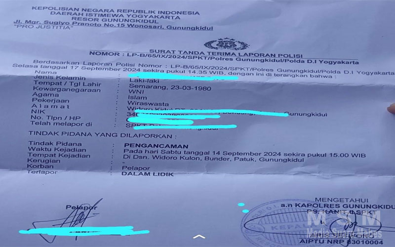 Dalam prosesi pelaporan, satu orang pelapor (korban), telah dimintai keterangan dan pihak kepolisian Polres Gunungkidul akan segera menindaklanjuti laporanya.