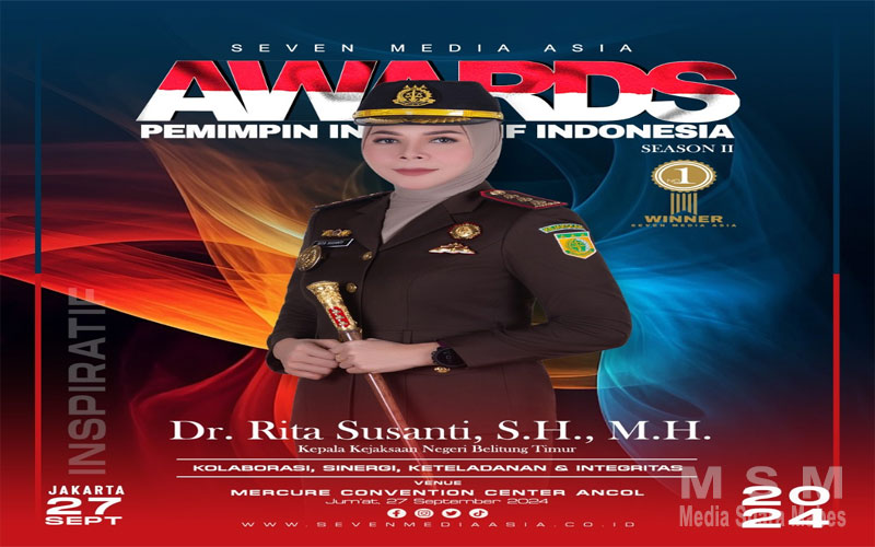MediaInvestigasiMabes, Babel – Kepala Kejaksaan Negeri Belitung Timur, Dr. Rita Susanti meraih penghargaan sebagai Pemimpin Inspiratif Indonesia 2024.