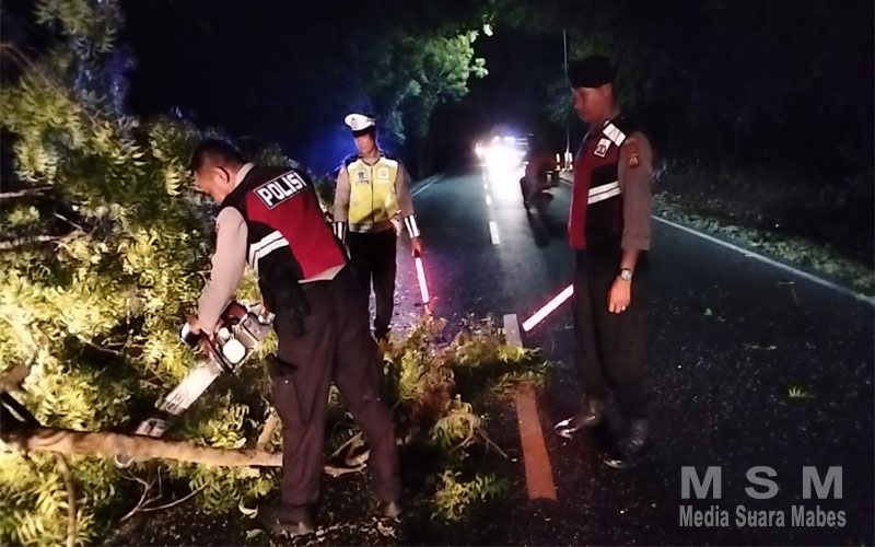 Evakuasi Pohon Tumbang di Jalan Utama Gilimanuk-Denpasar, Polsek Kawasan Pelabuhan Gilimanuk Pastikan Arus Lalu Lintas Kembali Lancar