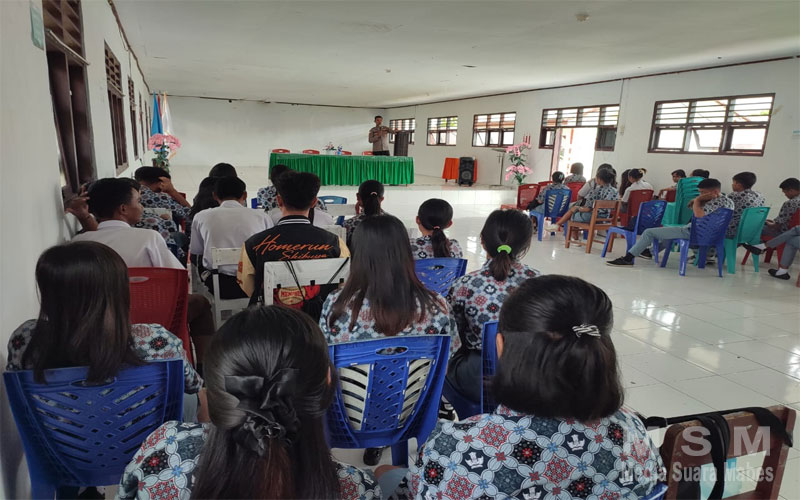 Personil Polsek Lirung BRIGADIR ROLAND TAAWERAN (Bhabinkamtibmas) Melaksanakan Giat Sosialisasi Penerimaan Anggota Polri Bagi Siswa Kelas XII Sekolah Menengah Atas Negeri 1 Lirung.