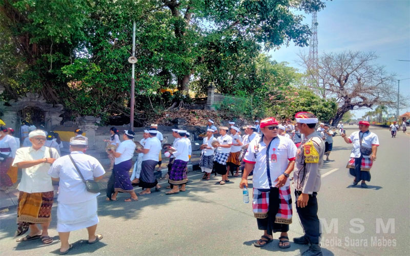 Bhabinkamtibmas tak hanya hadir sebagai pengamat, tetapi juga ikut serta dalam prosesi, bahu-membahu dengan umat Hindu setempat. Aiptu I Nengah Artana bahkan turut membantu membawa konsumsi bagi warga yang melaksanakan mebejian, suatu bentuk penghormatan dan kedekatan dengan masyarakat. Kehadiran personel Polri di tengah masyarakat menciptakan suasana aman, tertib, dan lancar sepanjang prosesi keagamaan.