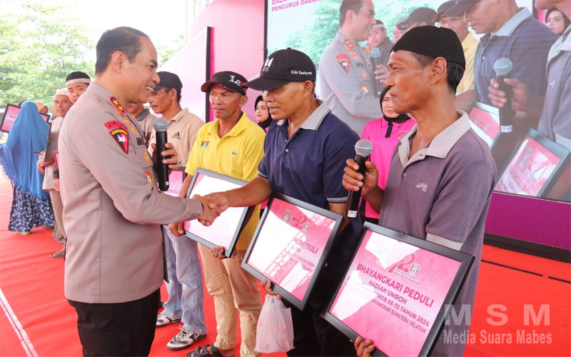 MediaInvestigasiMabes (MSM Group), Palembang – Puncak Hari Kesatuan Gerak Bhayangkari (HKGB) ke-72 Tahun 2024, Pengurus Bhayangkari Daerah Sumsel melakukan bakti sosial dan bakti kesehatan kepada 5.000 masyarakat. Baksos dan baktikes dipusatkan di Stadion Wira Bhakti, Kompleks Pakri, Palembang, Sabtu (19/10/2024).