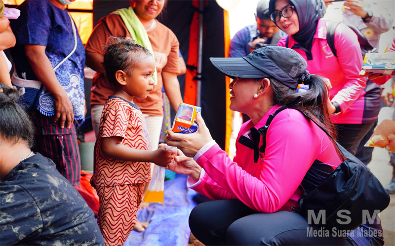 Dalam kesempatan itu, bantuan dari Kapolri Jenderal Listyo Sigit Prabowo dan Bhayangkari disalurkan kepada para pengungsi. Adapun bantuan dari Kapolri yang diberikan kepada para korban yaitu: