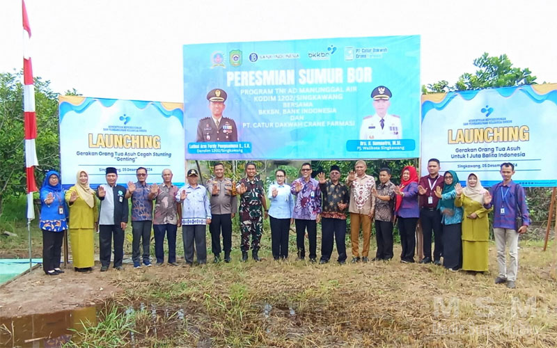 MediaInvestigasiMabes (MSM Network), Singkawang – Dalam upaya mendukung percepatan penurunan angka stunting dan meningkatkan pelayanan keluarga berencana (KB), Kodim 1202/Singkawang bersama dengan berbagai mitra meluncurkan 3 program unggulan, yaitu Gerakan Orang Tua Asuh Cegah Stunting (GENTING), Gerakan Intensifikasi Penggarapan Pelayanan KB Wilayah Prioritas (GESIT KB) dan peresmian sumur bor program TNI AD Manunggal Air, kegiatan berlangsung di Perumahan Grand Sinka Permai, Kelurahan Sungai Bulan, Kecamatan Singkawang Utara, Kota Singkawang. Kamis,(05/12/2024).