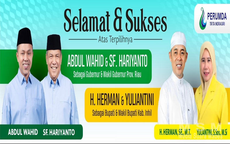 MediaInvestigasiMabes (MSM Network), Kab. Indragiri Hilir – Direktur Perumda Tirta Indragiri, Ir. Ahamd Hafiz, bersama seluruh karyawan dan karyawati, mengucapkan selamat atas kemenangan pasangan Gubernur dan Wakil Gubernur Riau terpilih, Abdul Wahid dan SF Haryanto, serta pasangan Bupati dan Wakil Bupati Kabupaten Indragiri Hilir, H. Herman dan Yuliantini, untuk periode 2025-2030. Menurut Ir. Ahamd Hafiz, kemenangan ini memberikan harapan baru bagi kemajuan Riau dan Kabupaten Indragiri Hilir di masa mendatang.