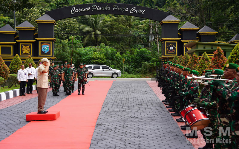 Selanjutnya Menhan melaksanakan kunjungan kerja ke Rindam XII/Tpr. Tiba di lembaga pendidikan milik Kodam XII/Tpr ini, ia disambut dan terima paparan dari Danrindam XII/Tpr, Kolonel Inf Aliyatin Mahmudi, S.IP., M.Si., M.Han., terkait kondisi satuan dan Rencana Operasional Pendidikan Dikmata TNI AD Gel I TA 2025.