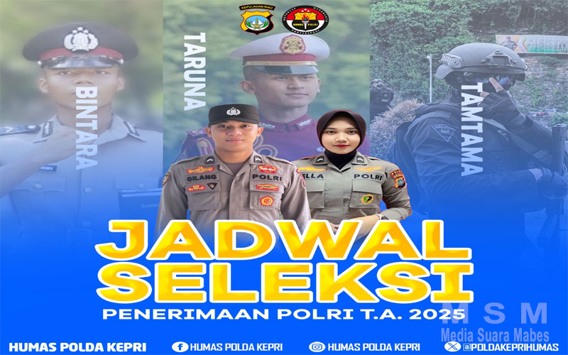 MediaInvestigasiMabes (Jaringan MSM), Batam – Polri membuka kesempatan bagi putra-putri terbaik bangsa untuk bergabung melalui seleksi penerimaan terpadu calon Taruna Akpol, Bintara, dan Tamtama Tahun Anggaran 2025. Proses rekrutmen ini dilaksanakan secara Bersih, Transparan, Akuntabel, dan Humanis (BETAH). Pendaftaran dibuka mulai 4 Februari hingga 6 Maret 2025 secara online, diikuti dengan tahapan seleksi di tingkat daerah (Panda) dan pusat (Panpus). Seluruh tahapan seleksi dilakukan dengan prinsip Clear and Clean, memastikan bahwa setiap calon anggota Polri yang terpilih memiliki kompetensi, integritas, dan kualitas terbaik. Berikut rincian tahapan seleksi untuk masing-masing kategori: