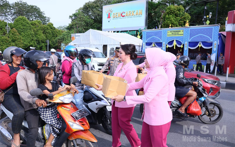 MediaInvestigasiMabes (Jaringan MSM), Pontianak – Ketua Bhayangkari Daerah Kalimantan Barat Ny. Nila Pipit Rismanto didampingi oleh Wakil Ketua Bhayangkari Daerah Kalimantan Barat Ny. Ully Roma Hutajulu dan Wakil Ketua Pengurus Yayasan Kemala Bhayangkari Daerah Kalimantan Barat, Ny. Yola Sigit Jatmiko serta diikuti oleh Bhayangkari Polda Kalbar lainya melaksanakan kunjungan ke Pos OPS Ketupat Kapuas 2025 guna membagikan bingkisan kepada Para Personel yang sedang bertugas dan bagi-bagi Takjil kepada para pengendara yang sedang melintas. (Kamis, 27/3)