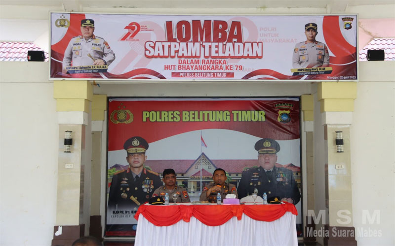 MediaSuaraMabes, Babel – Dalam rangka memeriahkan Hari Ulang Tahun (HUT) Bhayangkara ke-79 yang mengusung tema “Polri untuk Masyarakat”, Polres Belitung Timur menggelar Lomba Satpam Teladan Tahun 2025 di Joglo Patriatama, pada Selasa (25/6/2025).