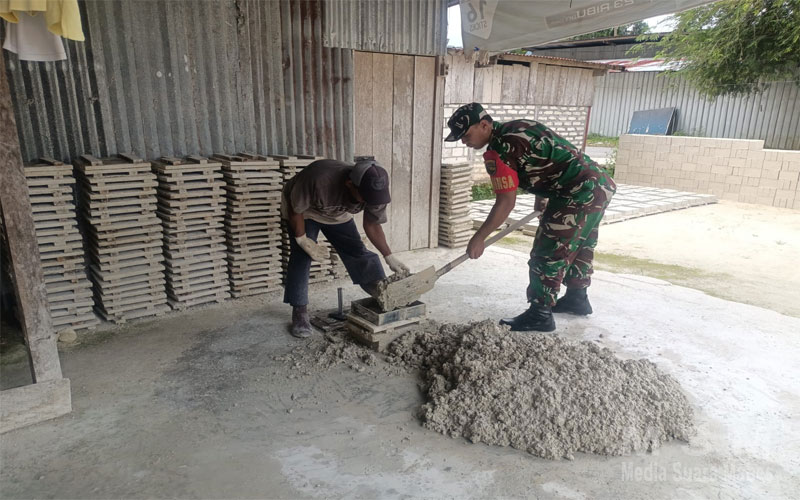 MediaSuaraMabes, Kepulauan Yapen – Koptu Aan Kurniawan, Babinsa Koramil 1709-01/Serui, membantu usaha pembuatan batu bata milik warga binaannya, Muhammad Taher, di Distrik Yapen Selatan, Kabupaten Kepulauan Yapen, pada Rabu (9/7/2025). Bantuan ini merupakan bentuk dukungan moril dan tenaga kepada warga yang berusaha mandiri untuk meningkatkan kesejahteraan keluarga.