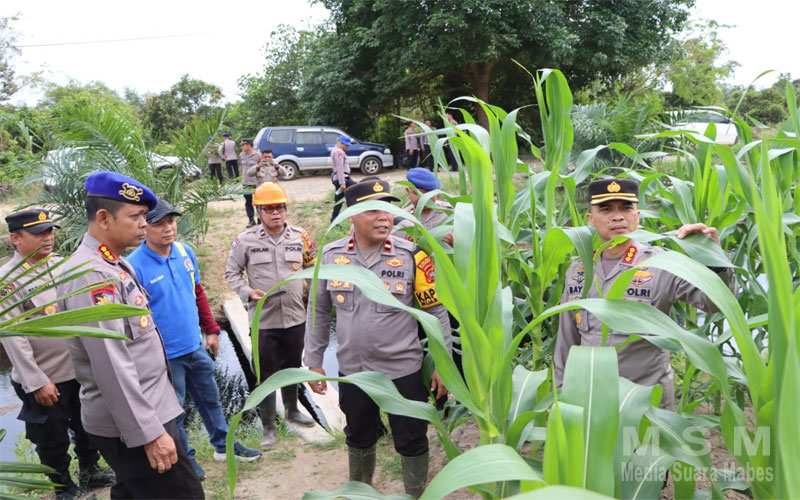 MediaSuaraMabes, Ketapang – Polda Kalbar, Dalam rangka mensukseskan program ketahanan pangan nasional, khususnya di wilayah Kalimantan Barat, Tim Asistensi Ketahanan Pangan Polda Kalbar melakukan kunjungan kerja ke wilayah Kabupaten Ketapang, Tim asistensi yang dipimpin Dirpolairud Polda Kalbar Kombes Pol Agusman, S.I.K., bersama Kabid Humas Kombes Pol Dr. Bayu Suseno, S.H., S.I.K., M.M., M.H., dan Wadir Samapta Polda Kalbar AKBP Achmad Dharmianto, S.H., S.I.K., melaksanakan asistensi selama dua hari di wilayah Kabupaten Ketapang serta Kabupaten Kayong Utara. Kedatangan tim asistensi Polda Kalbar disambut langsung Kapolres Ketapang AKBP Muhammad Harris, S.H., S.I.K., M.I.K., CPHR., bersama sejumlah pejabat utama Polres Ketapang.