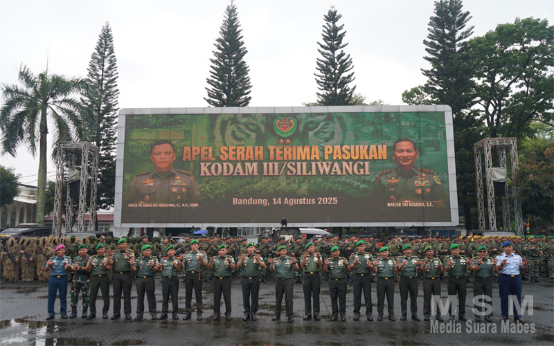 MediaSuaraMabes, Bandung – Kodam III/Siliwangi menggelar rangkaian tradisi penyambutan Pangdam III/Slw Mayjen TNI Kosasih, S.E., dan Ketua Persit Kartika Chandra Kirana Daerah III/Slw Ny. Riri Kosasih, bertempat di Makodam III/Slw, Jalan Aceh No. 69 Kota Bandung, Kamis (14/08/2025).