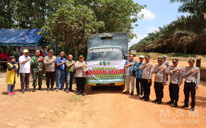 “Panen raya kali ini difokuskan pada komoditas jagung yang ditanam di lahan perkebunan milik PT. SMM. Dilaporkan bahwa panen dilakukan pada lahan seluas 1 hektare dengan estimasi hasil panen mencapai 1,3 ton (belum dipipil).” Ujar AKBP. Indra.