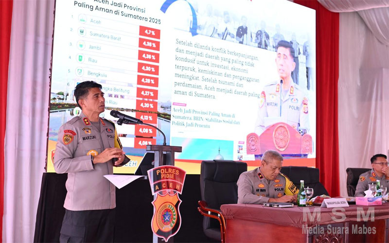 Kapolda Aceh Irjen Pol Drs. Marzuki Ali Basyah, M,M dalam arahannya menyampaikan bahwa Aceh harus menjadi daerah yang aman dan nyaman bagi seluruh masyarakat. Berdasarkan berbagai indikator kamtibmas, Aceh tercatat sebagai provinsi teraman nomor satu di Pulau Sumatera. Dari 10 provinsi di Sumatera, Aceh menjadi yang paling kondusif, dan ini merupakan hasil kerja bersama seluruh elemen masyarakat serta aparat keamanan.”